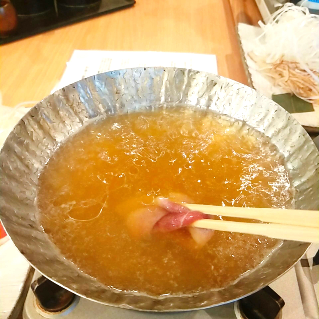 いい感じにしゃぶしゃぶできました。私はこの時、鴨しゃぶを初めて食べたのですが、豚のしゃぶしゃぶとはまた違った味で、異なる魅力、おいしさを持っているなと思いました。物珍しさだけではないおいしさがそこにはありました。